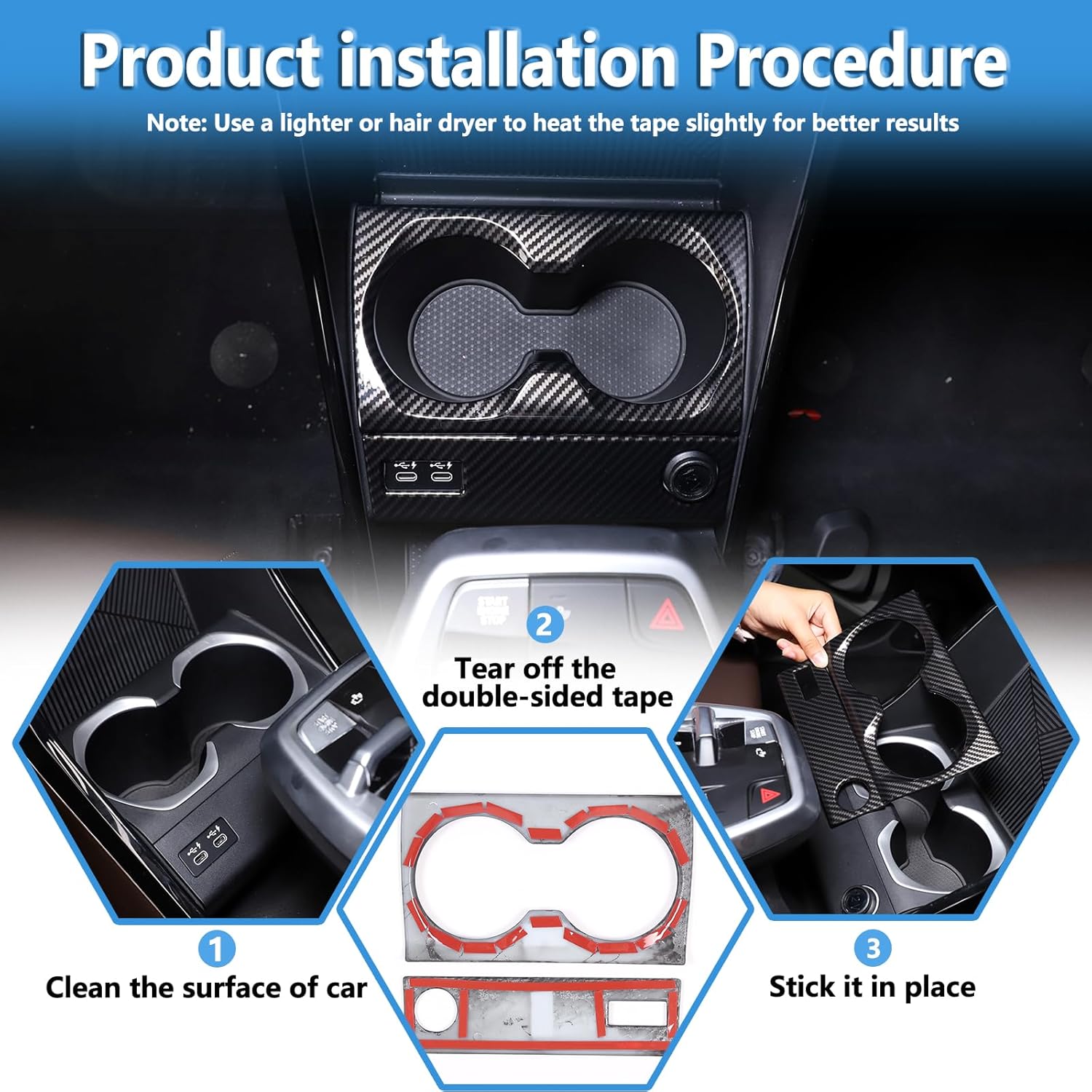 Decorate Your Cup Holder Panel and Protection it From Scratch.Please select the appropriate part cover trim according to your model and yearCar Cup Holder Panel Cover Trim Perfect fit, protect your car, also cover the original scratches and enhance the taste of the interior.Product features: Light weight, Durable, Scratch-resistant, Easy to install.Fitment: - Car Cup Holder Panel Cover Trim Compatible with BMW X1 F48 2023 2024.Material: Car Cup Holder Panel Cover Trim Made of ABS PlasticCar Cup Holder Panel Cover Trim 100% brand new and high quality guaranteed Easy to use and to operate at affordable prices.Bring the most beautiful colors to your interior.And can bring the protection of car interior.No need to punch holes, no screws, direct installation.Installation method:1.The back of the trim cover come with 3M tape.2.Wipe clean the around in advance, and keep dry and clean.3.Tear off the tape and press it tightly, and the installation can be completed quickly and easily.4.If the weather is cold. Please use the hair dryer(hot air blowing)in order to provide the best viscous.5.Please keep dry after been install at least 72 hours. Or it will easy to fall off.6. Any question about installation, please feel free contact us.Package Include:2 PCS X Car Cup Holder Panel Cover Trim .NOTES: Please check whether this item can fit on your car before purchasing.
