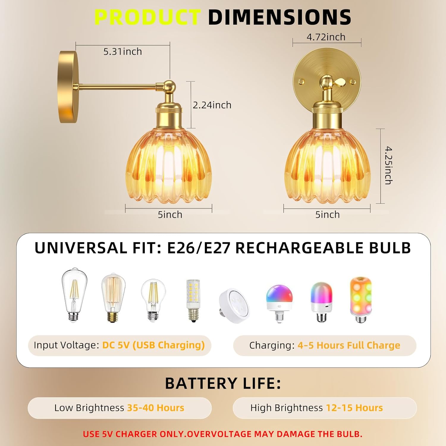 | Style | Vintage Battery Operated Wall Sconce Amber |