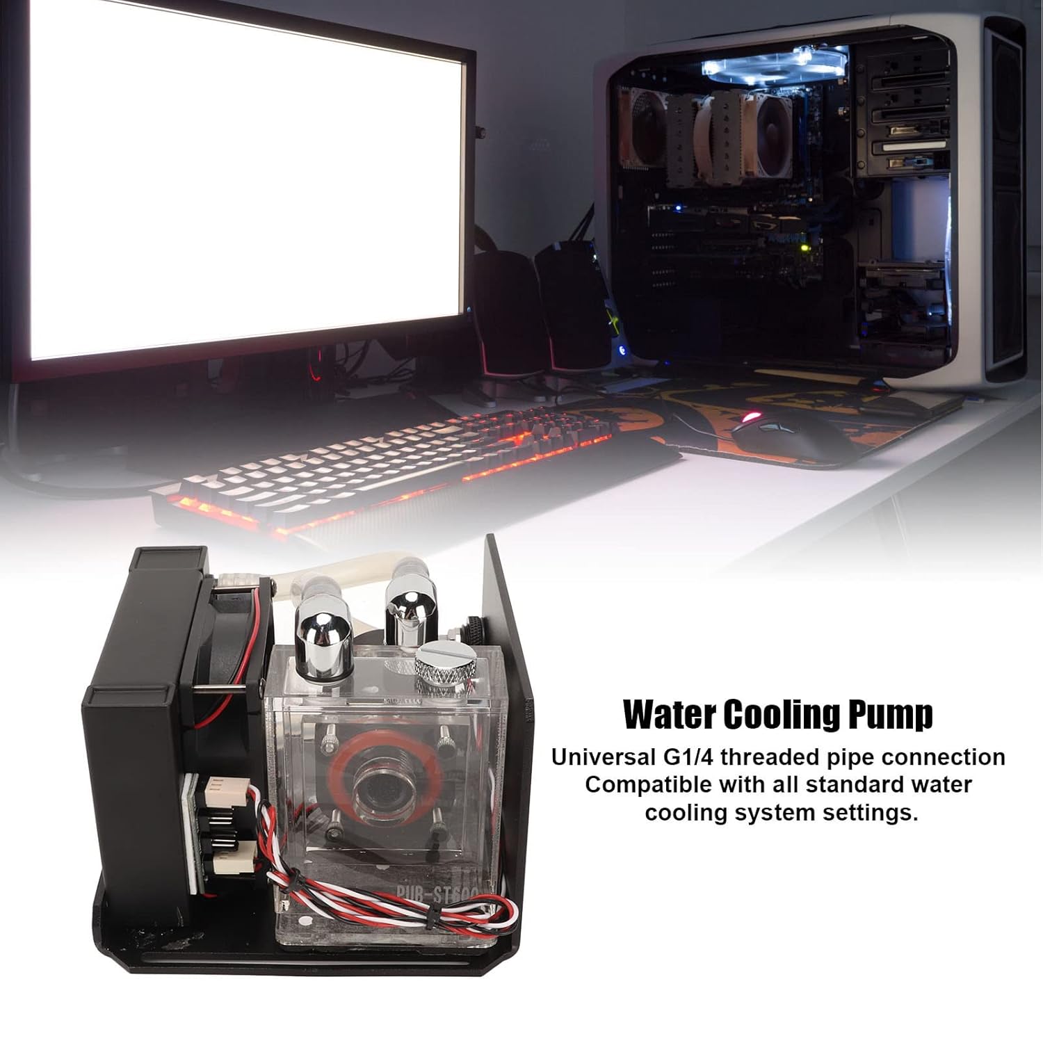 1. Interface: The interface of water cooling pump is D port and 4pin, which is very and can perfectly match your equipment.2. Wide Compatibility: Water cooling pump has wide compatibility, which is compatible with all standard water cooling system settings.3. Exquisite Design: PC is connected by general G1/4 threaded pipe, which is a 600L/H liquid CPU cooler.4. Easy to Install Use: Graphics card water cooling radiators is easy to operate and use, and can be used after installation.5. Aluminum Alloy ABS: Water cooled pump is made of aluminum alloy and ABS material, which is strong, rustproof, wear and .Specification:Item Type: Water Cooling PumpMaterial: ABS, Aluminium AlloyScope of Application: ComputerRated Current: 0.8A±10%Rated Power: 10wRated Voltage: 12VPump : 4 MetersPump : 600L/HPackage List:1 x Water Cooling Pump