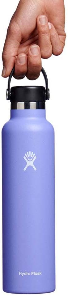 Stay hydrated with the Hydro Flask 21 oz Standard Mouth Bottle. With a comfortable, flexible handle, the reusable water bottle is leakproof with double-wall insulation to keep drinks cold up to 24 hours and hot for up to 12 hours. The insulated bottle easily fits ice cubes and is dishwasher safe. 24 hours cold. 12 hours hot. TempShield® double-wall vacuum insulation. Leakproof when closed. Won't retain odor or leftover flavor. BPA-Free. Dishwasher safe. Easy to clean by hand or dishwasher. Stays clean and colorful. Not for use on a stove, in a microwave or freezer. Keep hot drinks out of the reach of children. Bottle fits all Standard Mouth caps and lids, including the leakproof Flex Straw Cap.