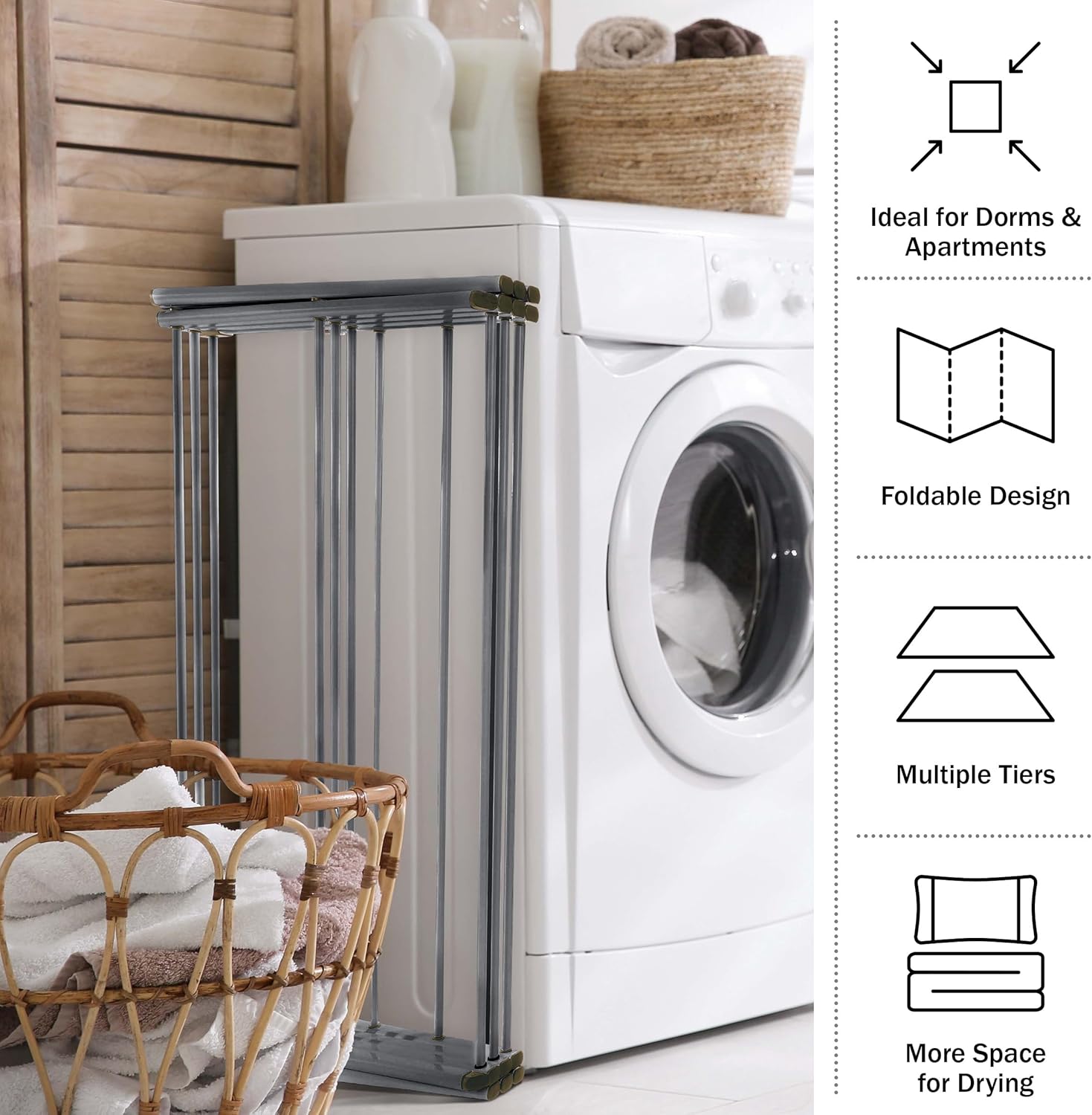 The Collapsible Drying Racks for Laundry by Lavish Home are a convenient small space laundry drying solution for any home. This drying rack clothing is lightweight and collapsible with an accordion design so that it folds down to less than 4-inches-tall for portability and compact storage when not in use. Suitable for inside or outside usage, this laundry rack can be used in your bathroom, laundry room, in your backyard, or on your balcony, making it ideal for small spaces. Add this rack to your list of college essentials for an energy-saving and gentler option for drying pants, delicates, towels, blankets, and much more.