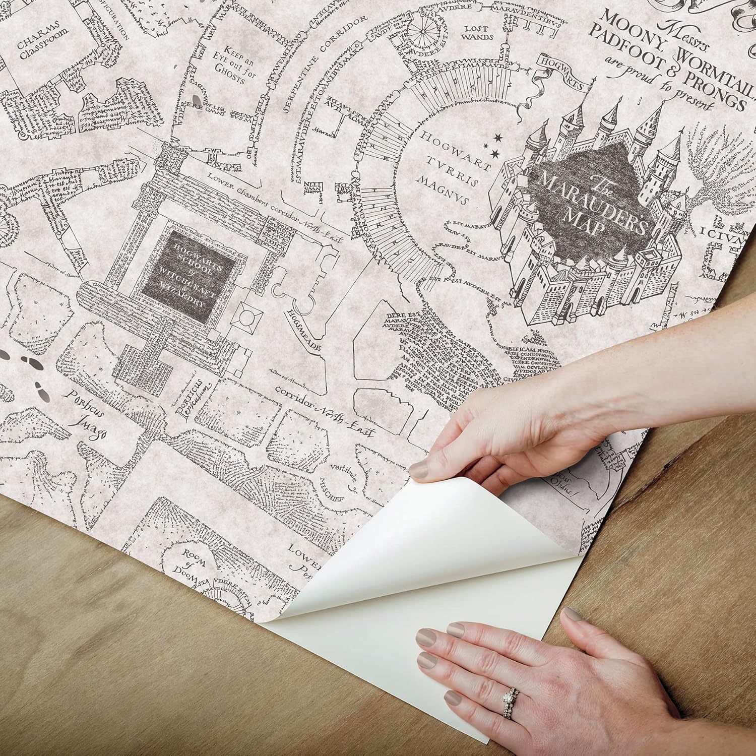 Calling all Harry Potter™ fans! Display the Marauder's Map on your walls! This officially-licensed Harry Potter™ peel and stick wallpaper print features the iconic Marauder's Map from the Harry Potter universe in a grey palette. Installation requires no wizardry-- just Peel, Stick, Done!™