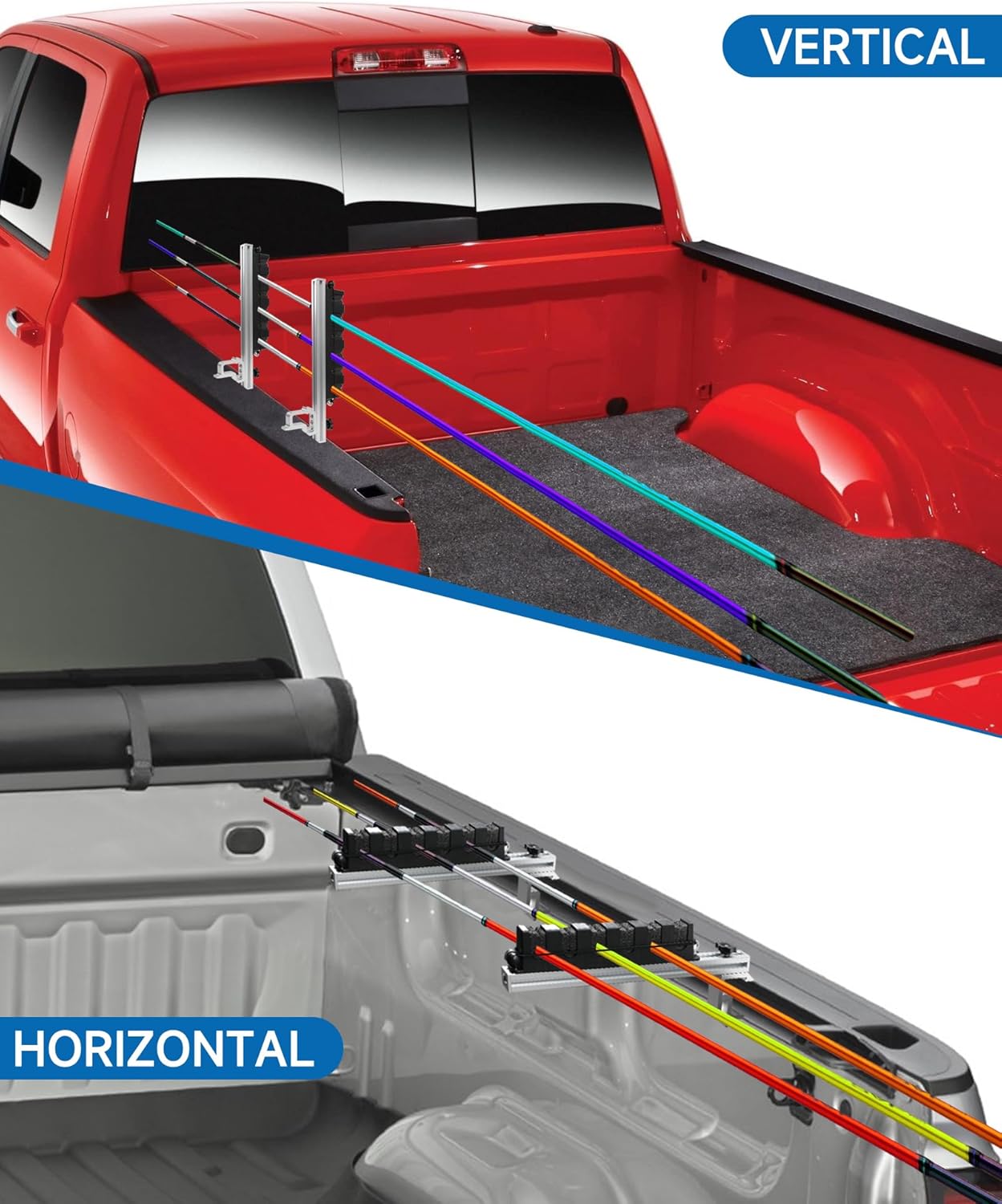 Wide Range of Uses: The truck bed rod holder adopts an adjustable C-clamp design with a maximum clamping thickness of 1.5 inches, suitable for most truck beds and boat guardrails. Note: Not suitable for modified vehicles with slides, cargo covers or camper roofs.