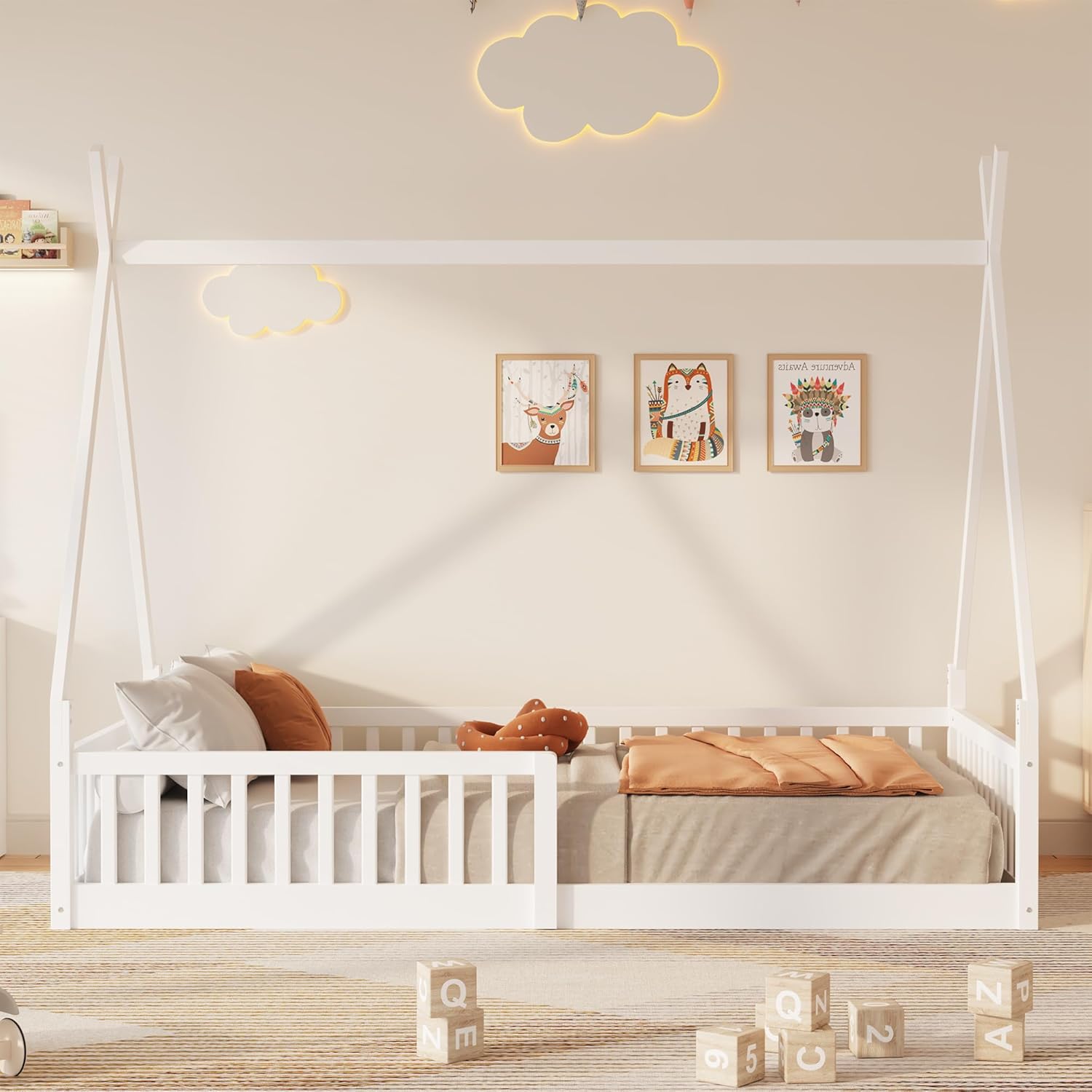 ❤ Featuring roof, this bed doubles as a semi-enclosed play place perfect for kids to study, watch TV or explore their imaginations. The contemporary style and neutral finish blend smoothly with any color scheme, allowing this design to shine. With roof and a sturdy pine frame,this bed offers a safe space for your kids to get a good night's sleep.◾ Weight & Dimensions:Overall Product Dimension: 79"L x 40"W x 75"HNumber of Package: 2Overall Product Weight: 90LBSWeight Capacity: 250LBSRecommended Mattress Thickness: 6"-8"◾ Specifications:Product Type: House BedSize: Twin/FullColor: Beige/GrayMaterial: Velvet+Plywood+PinewoodBox Spring Required: NoNumber of Slats: 10Assembly Required: YesCountry of Origin: Vietnam◾ Notes:1. Manual measurement has been used,there may be some reasonable error.2. All the pictures are taken by actual samples, slight chromatic aberration may occur due to lighting or display.