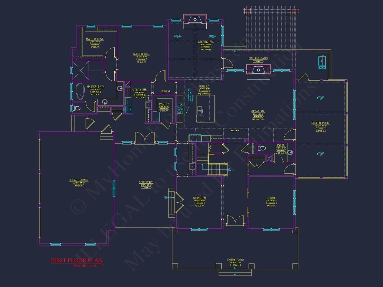 Width: 95′-2″Depth: 69′-6″Htd SF: 4,270Unhtd SF: 1,992Elegant 2-Story House Plan with Courtyard & Vaulted CeilingsExplore this stunning 4,270 sq. ft. architectural house plan featuring 4 bedrooms, elegant vaulted ceilings, and CAD blueprints—ideal for stylish, modern living.This European-inspired house plan blends traditional, craftsman, and classical elements into a timeless design. With spacious interiors and versatile layout options, it's the perfect solution for families and professionals alike.Key Features of the Home PlanLiving Areas - Heated & UnheatedHeated area: 4,270 sq. ft. across two beautifully crafted stories.Unheated extras: Includes a 3-car side-entry garage, covered grill deck, patio, and screened porch.Bedrooms & Bathrooms4 spacious bedrooms including a luxurious first-floor Owner Suite with private bath and walk-in closet.Multiple full bathrooms for optimal comfort and privacy throughout the home.Interior HighlightsVaulted ceilings in the great room provide dramatic height and elegance.Open floor plan creates seamless flow between kitchen, dining, and living spaces. Explore open layouts.Kitchen island and walk-in pantry for daily ease and entertaining efficiency.Fireplace in the great room adds warmth and comfort. View fireplace plans.Dedicated office/study and a versatile bonus room perfect for remote work or recreation.Spacious mudroom and large laundry area for streamlined organization.Garage & Storage DetailsGarage Bays: 3-car garage with convenient side entry.Garage Type: Attached with traditional courtyard positioning for enhanced curb appeal.Storage: Includes walk-in closets, attic storage options, and bonus room flexibility.Outdoor Living FeaturesBeautiful courtyard at the front adds architectural interest and privacy.Grill deck, screened porch, and rear patio provide multiple spaces for outdoor entertaining or relaxing.Stone and siding exterior finishes