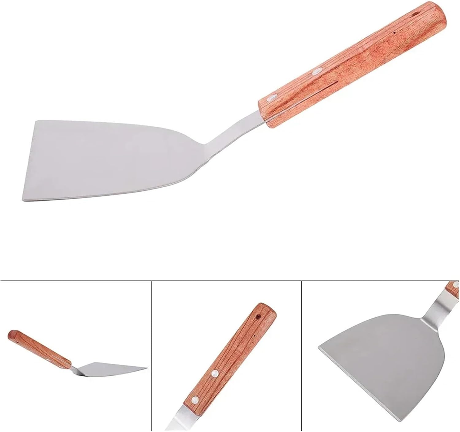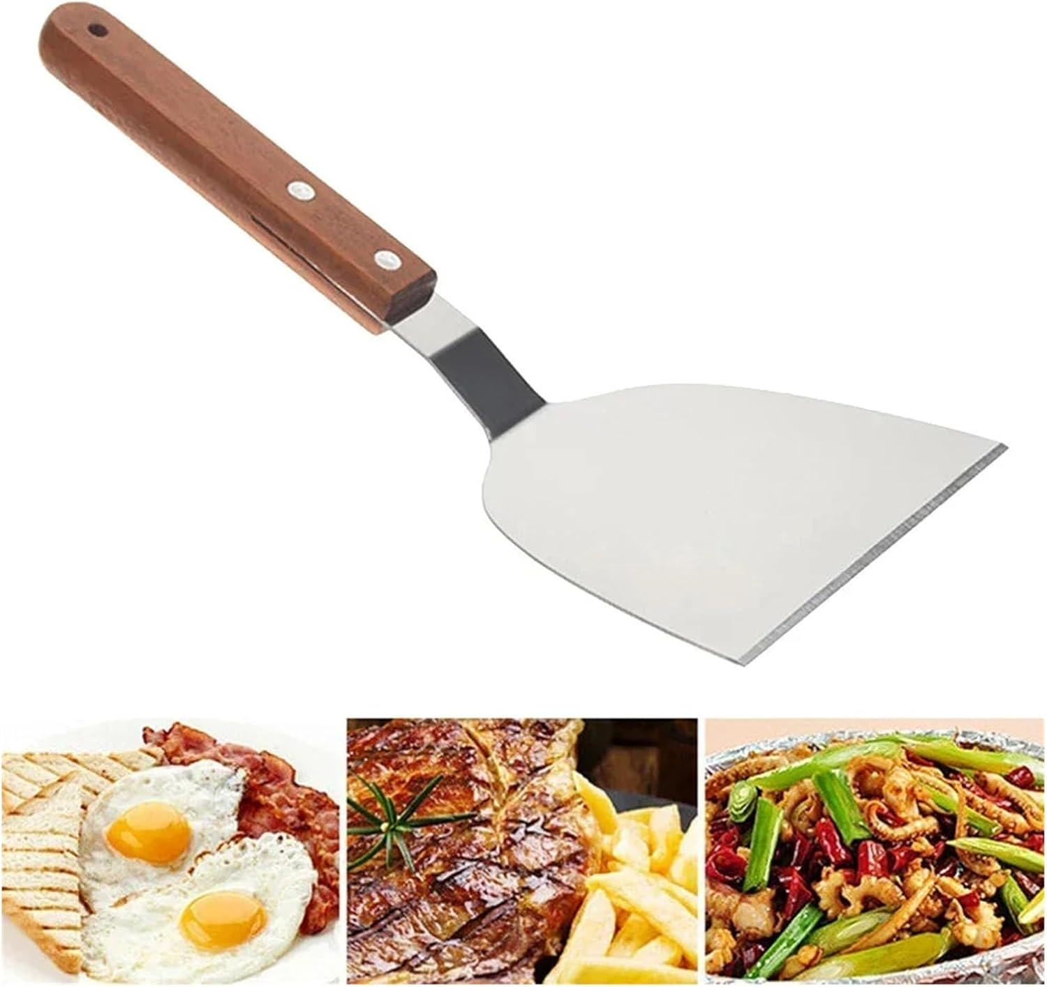 Great for Cooking Ribs, Roasts, Chickens, Turkeys, Hams and more; Perfect for slow cooking, barbecuing, camping, picnics, and other outdoor activities.Material: Stainless Steel Size: 26*11.8cm (Approx.)Color: As Pictures ShowPackage Contents: 1*Hamburger TurnerNote: The real color of the item may be slightly different from the pictures shown on website caused by many factors such as brightness of your monitor and light brightness.Please allow slight manual measurement deviation for the data.Suitable for cleaning oven outdoor grill rack,etc.with little cleanser and strength,saving labor.