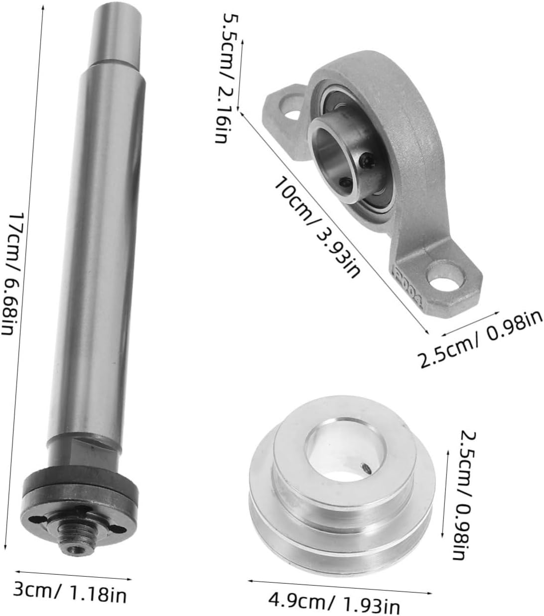 Package List 1 x table saw spindle seat Characteristics -Color:Silver woodworking tools -Size:10.00X5.50X2.50cm/3.93X2.16X0 DIY wood lathe. -Size:17.00X3.00X3.00cm/6.68X1.18X1 spindle pulley. -Material:Steel spindle seat pulley bench -Size:4.90X4.90X2.50cm/1.93X1.93X0 pulley for bench saw. -With its multifunctional design, this spindle assembly is for a wide range of woodworking activities, including cutting, trimming, and sanding, making it a versatile tool in your workshop lathe chuck. -Featuring a compact and lightweight design, this spindle assembly is easy to carry and store, making it an for woodworkers who need a portable solution for their on-the- rotary tools. -Constructed with a steel spindle seat, this assembly offers remarkable stability and longevity, ensuring it withstands the rigors of frequent use in various woodworking environments drill machine. -This spindle assembly is crafted for user-friendly operation, making it an for both beginners and seasoned woodworkers who seek simplicity and efficiency in their projects bench saw accessories.Goods DescriptionDIY bead tools The lathe chuck and drill machine compatibility expand its versatility, allowing you to tackle a wide range of tasks.spindle bearing seat pulley The construction ensures performance, while the compact design offers portability without compromising on power.spindle bearing Enhance your woodworking projects with our spindle assembly, designed to deliver high precision and reliability