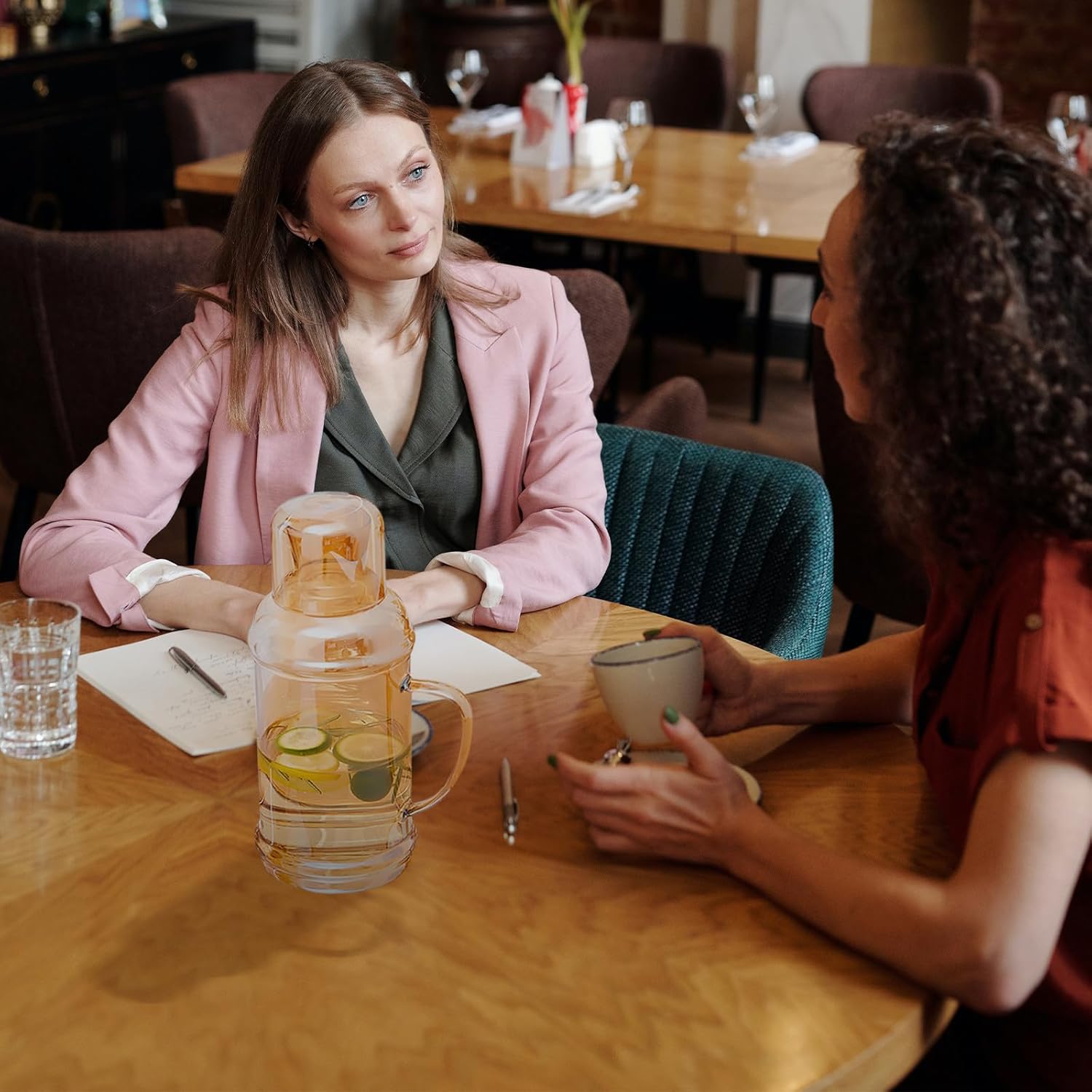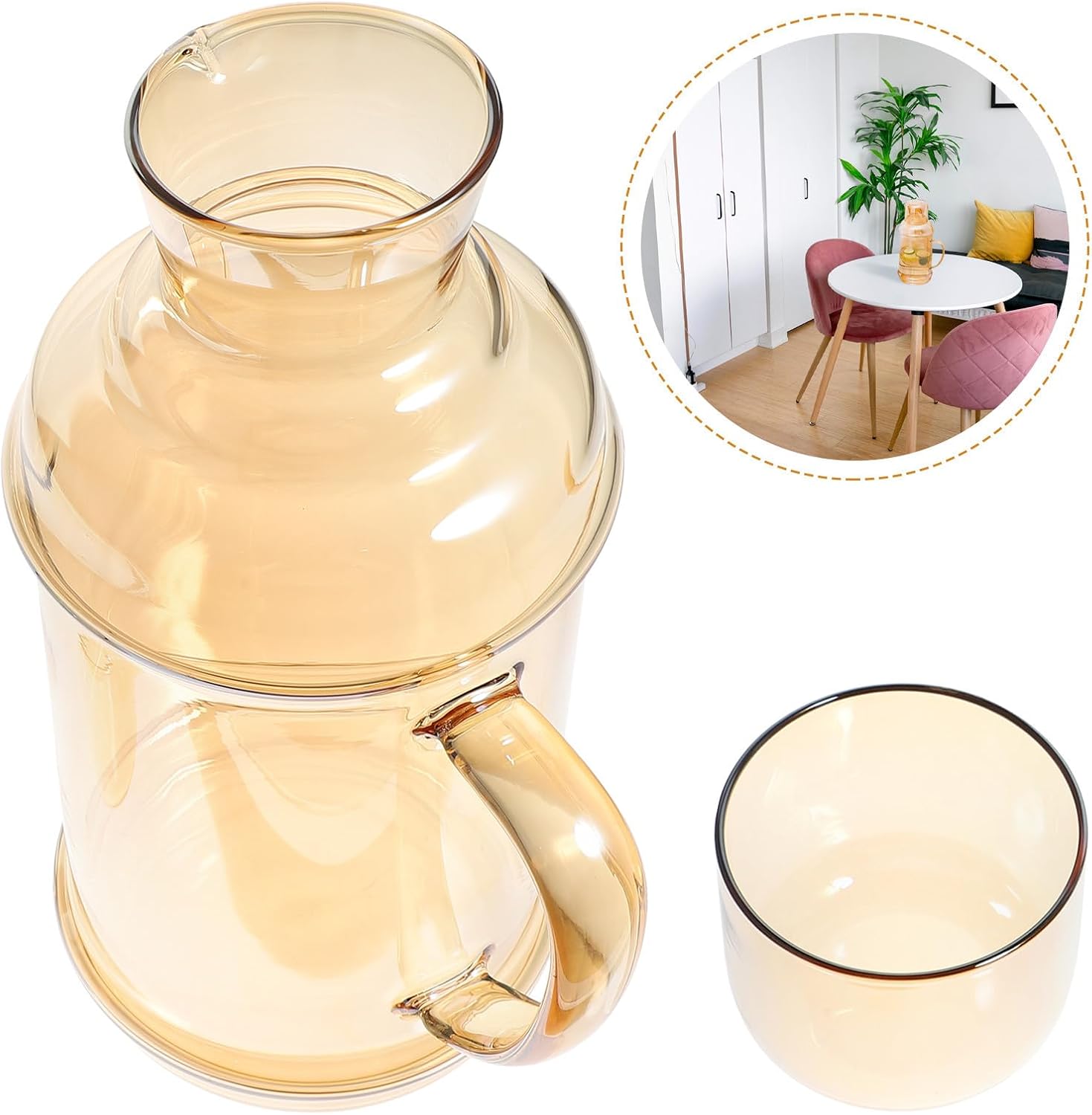 Package Include 1 x Water Pitcher Features -Material:Glass -Color:Khaki -Size(1100ML):22.00X14.00X10.00cm/8.65X5.50X3.93in -Product Info:Cold water kettle - , suitable for fruit juice, iced tea, drinks, etc iced tea pitchers. -With a cup, it is convenient for you to drink water, and it can also be used as a lid when not in use, bringing you a good experience vintage tea kettle. -The glass material can withstand instantaneous temperature differences. -Its capacity is enough, which can serve yourself or entertain guests glass jugs. -Using good glass material and fine workmanship, not easy to deform.Goods Informationglass water container This is an elegant and pretty water kettle, which is transparent and made of premium glass material.retro style water kettle You deserve to have.pitcher with lid It has a visible appearance, making people know what is inside at once.water jug Simple appearance makes it easier to clean