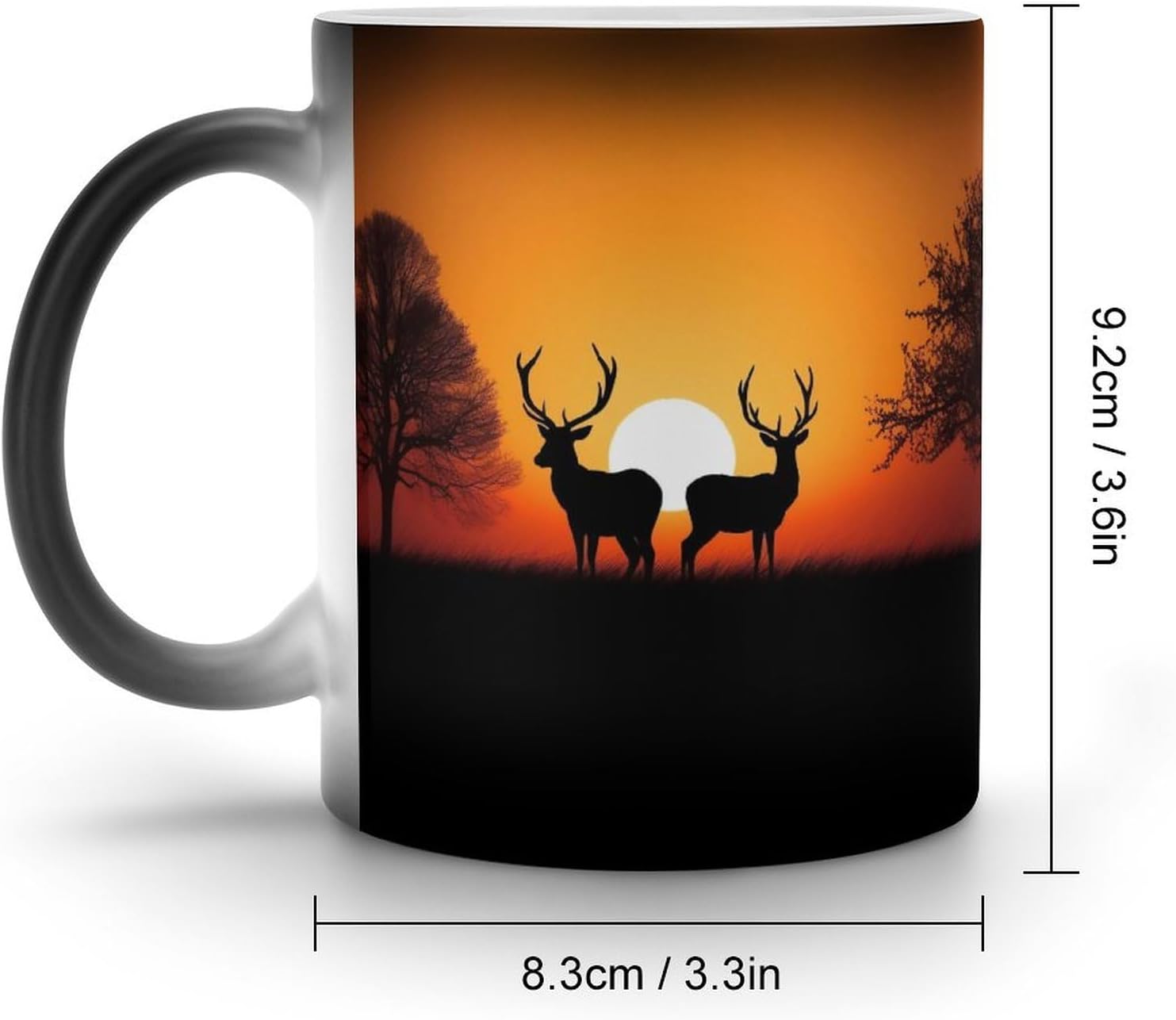 This unique color changing cups is easy to clean, Please scald it with boiling water before using it after receiving it to remove the dust generated during the production process of the cup. It is reusable, Not suitable for dishwashers, only hand wash The Nature Sunset Deer printed reusable color-changing cups are perfect for decorating your kitchen, restaurant or cafe. You can judge whether the coffee is cold by the color of the magic cup, so as to avoid drinking cold coffee