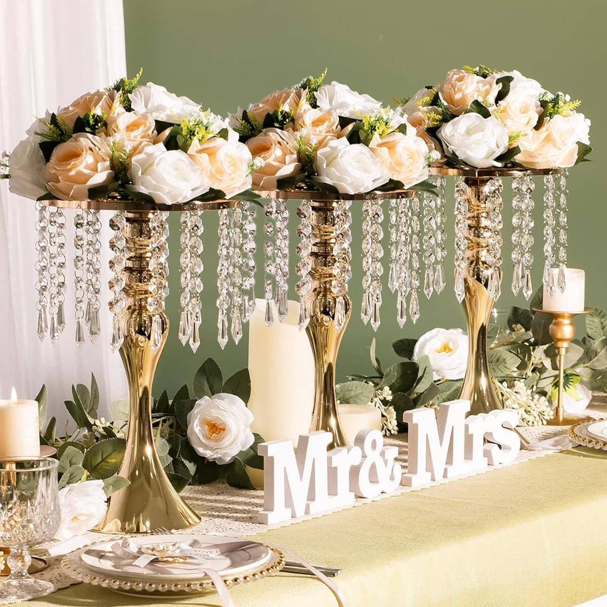 Crystal Wedding Flower Stand,Metal Wedding Centerpiece Vase,Gold Table Centerpiece Floral Display Rack for Tables Wedding Dinner Party, Ceremony Birthday Event Decor