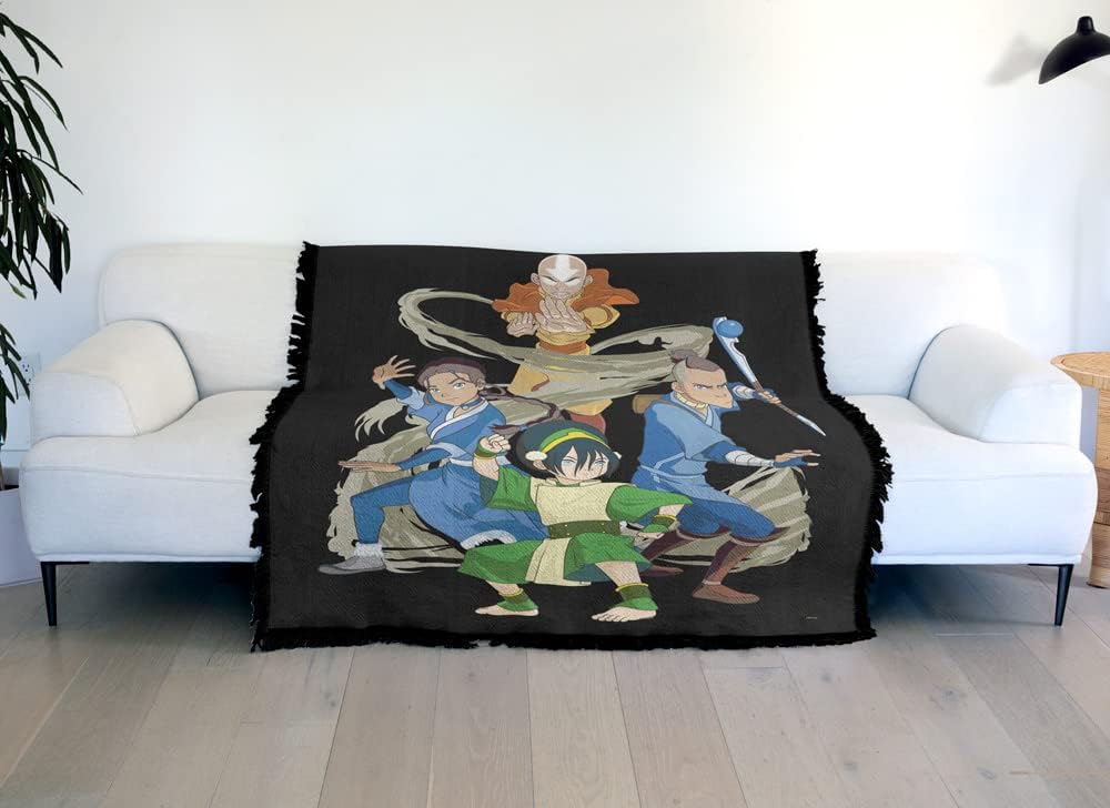 Avatar The Last Airbender Blanket, 50"x60" Team Avatar Elements Woven Tapestry Cotton Blend Fringed Throw Blanket