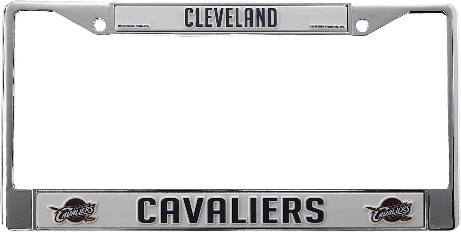 Showcase your team spirit with this Standard Chrome License Plate Frame by Rico Industries. This attention grabbing chrome license plate frame measures 6-inches by 12.25-inches and is decorated with vibrant team colored graphics. It features pre-drilled holes for easy mounting, is very durable, and fits most license plates. Officially licensed and makes for an ideal gift!