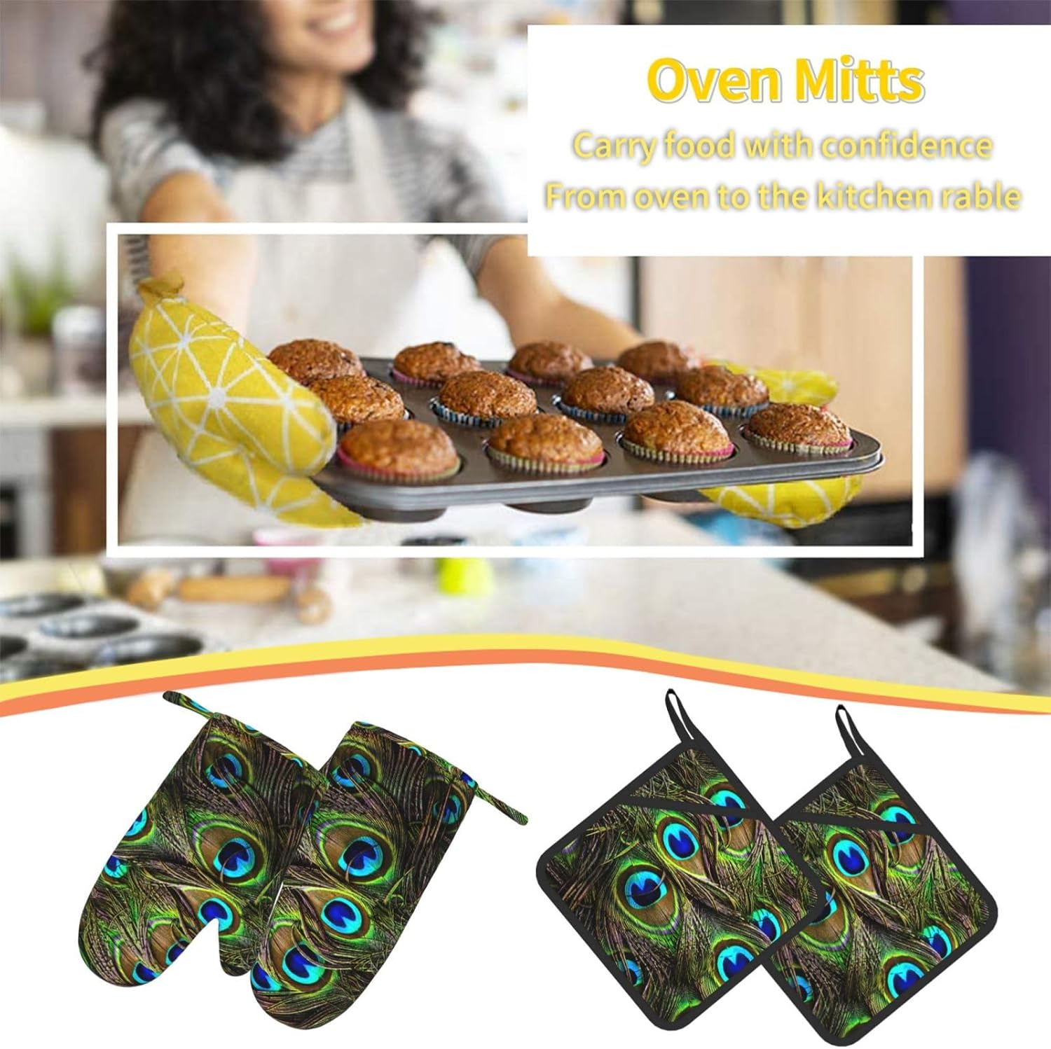 Upgrade your kitchen essentials with this oven mitts and pot holders set, designed for safe and comfortable handling of hot cookware. The set includes 2 heat-resistant oven mitts and 2 pot holders with pockets, making it a practical choice for daily cooking, baking, grilling, and microwave use.Crafted from high-quality polyester with thick insulated padding, these kitchen gloves deliver reliable heat protection up to 260°C. The soft quilted lining ensures comfort and flexibility, while the silicone palm design enhances grip and control when handling hot pots, pans, and trays.The non-slip silicone surface provides added stability, giving you confidence when moving hot cookware. Waterproof inner and outer layers make cleaning simple—just wipe clean or hand wash and air dry for easy care.Each piece features a convenient hanging loop for organized storage and quick access in your kitchen. Stylish and functional, this oven mitts set also makes a thoughtful gift for family and friends on holidays, housewarmings, and special occasions.