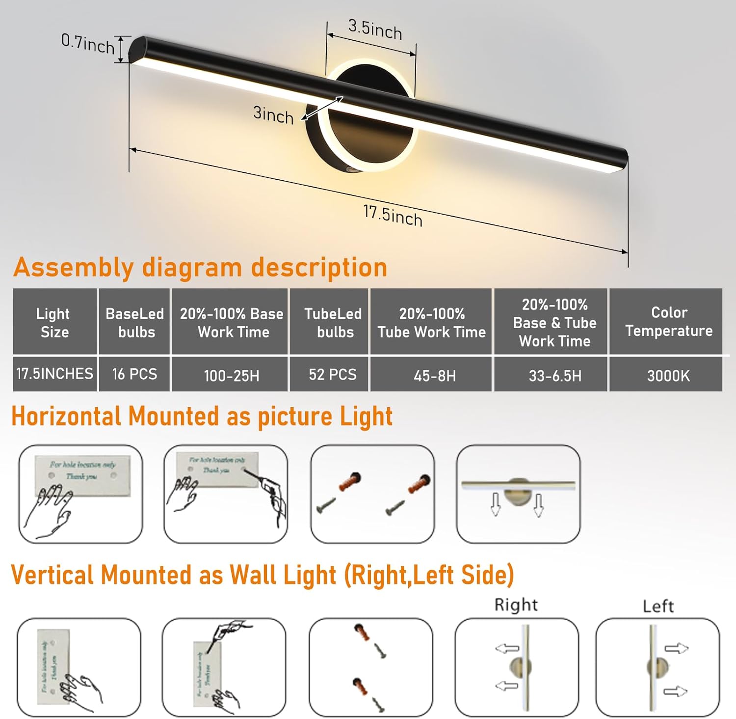 MORE DETAILS: *Power Source:5000mAh Rechargeable Battery Included . *Material: Metal and Aluminium. *Light Source: 52pcs +16pcs Super Led Bulbs. PACKING LIST * 1 x Picture Light * 1 x USB Type C cable * 2 x Screw * 1 x Remote Control* 1xUser Manual * Hole Location Paper