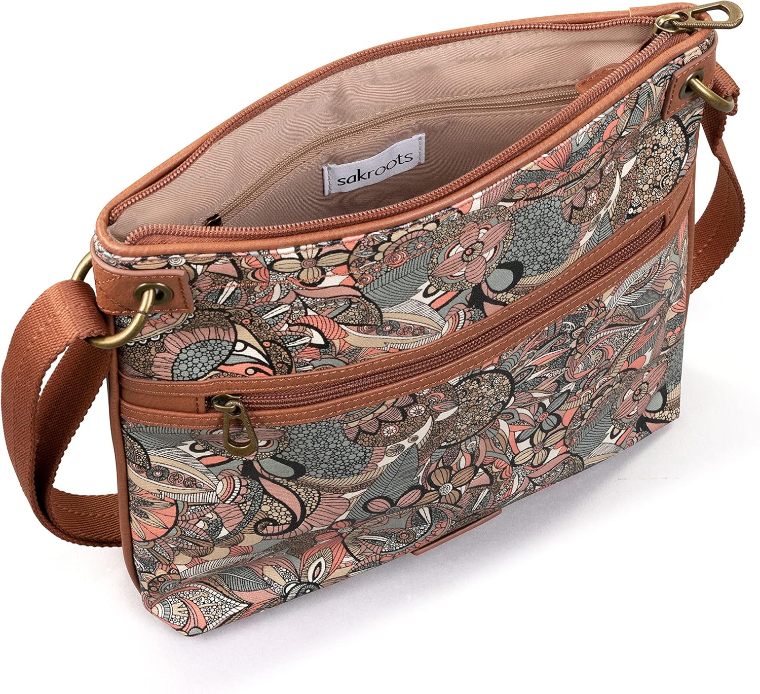 The Sakroots Artist Circle Flat Crossbody brings funtion and fun prints together. Perfect for on-the-go.