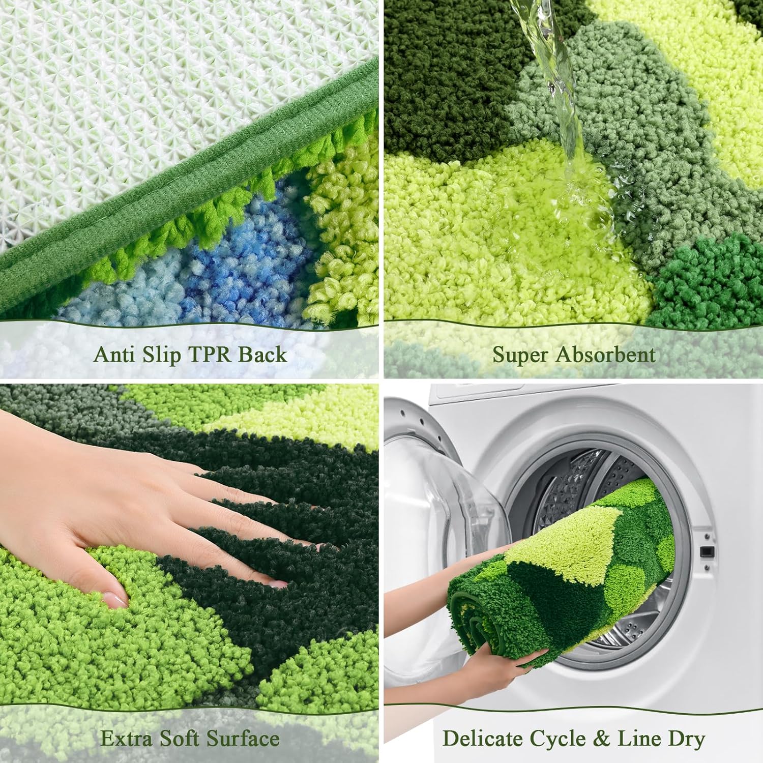 SHACOS Green Moss Bath Rugs 35"x20" Soft Fluffy Non Slip Moss Rug Bath Mats Cute Fun Irregular Unique Bathroom Rugs Absorbent Carpet for Bathroom Shower Tub Bedroom Rug Decor, Multigreen (Pack of 2)