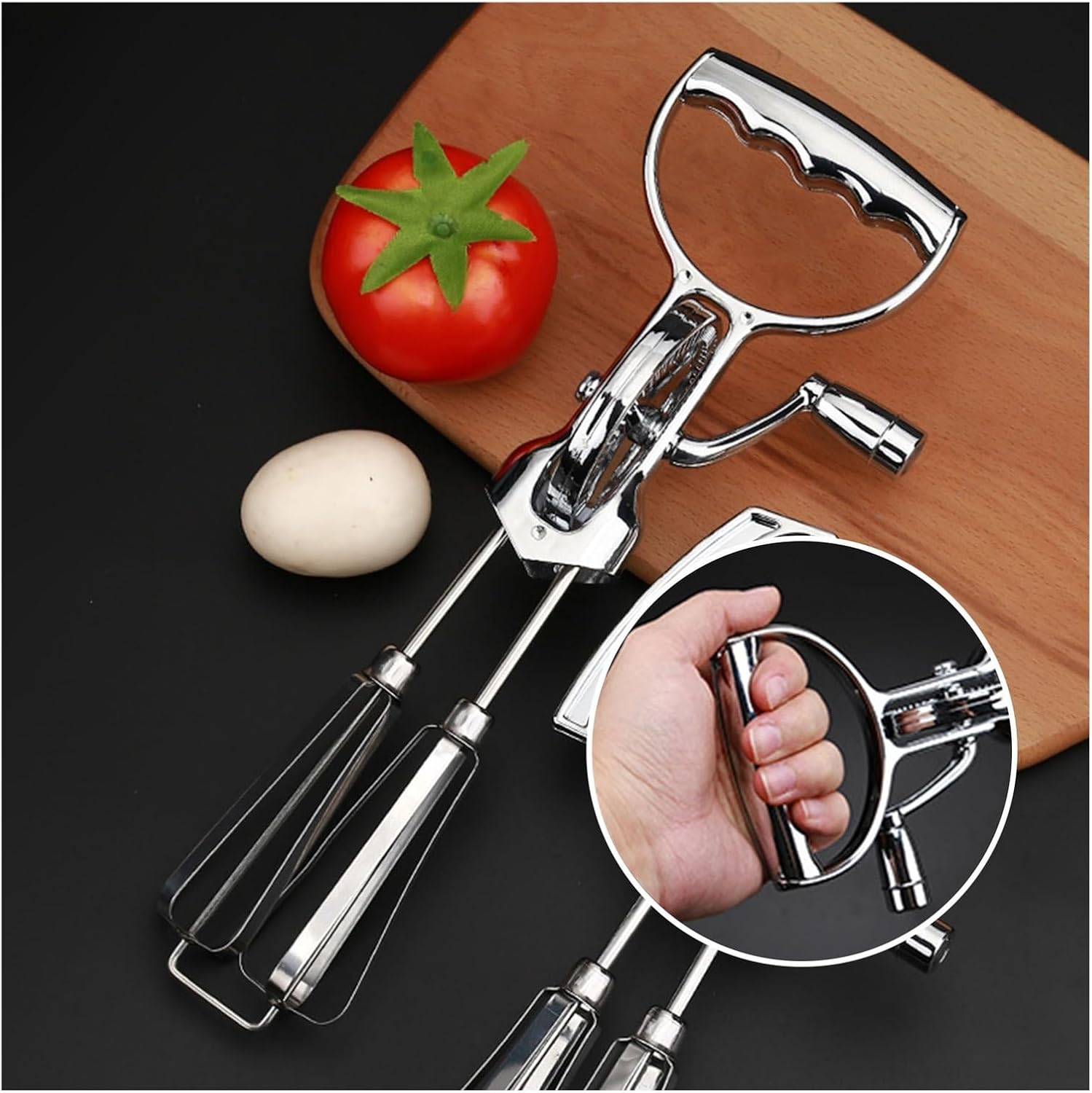 Stainless Steel Double Heads Egg Beaters Ergonomical Handheld Semi-automatic Mixer Household Time-Saving Baking ToolsSize: 31*9.5cm, Head Width: 7cm