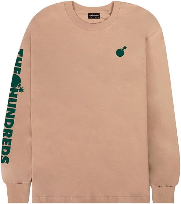 Featuring The Hundreds' iconic Solid Bomb graphic logo printed on the chest and The Hundreds Bar Logo Printed on the sleeve, this shirt combines design with everyday wearability. Made with durability and comfort in mind, it includes ribbed sleeve cuffs for a secure fit and a set-in rib collar with shoulder-to-shoulder taping for added structure. The double-needle bottom hem enhances durability, while the preshrunk fabric ensures minimal shrinkage, maintaining a reliable fit wash after wash. Available in sizes S-2XL and four colors: White, Navy, Black, and Sand.