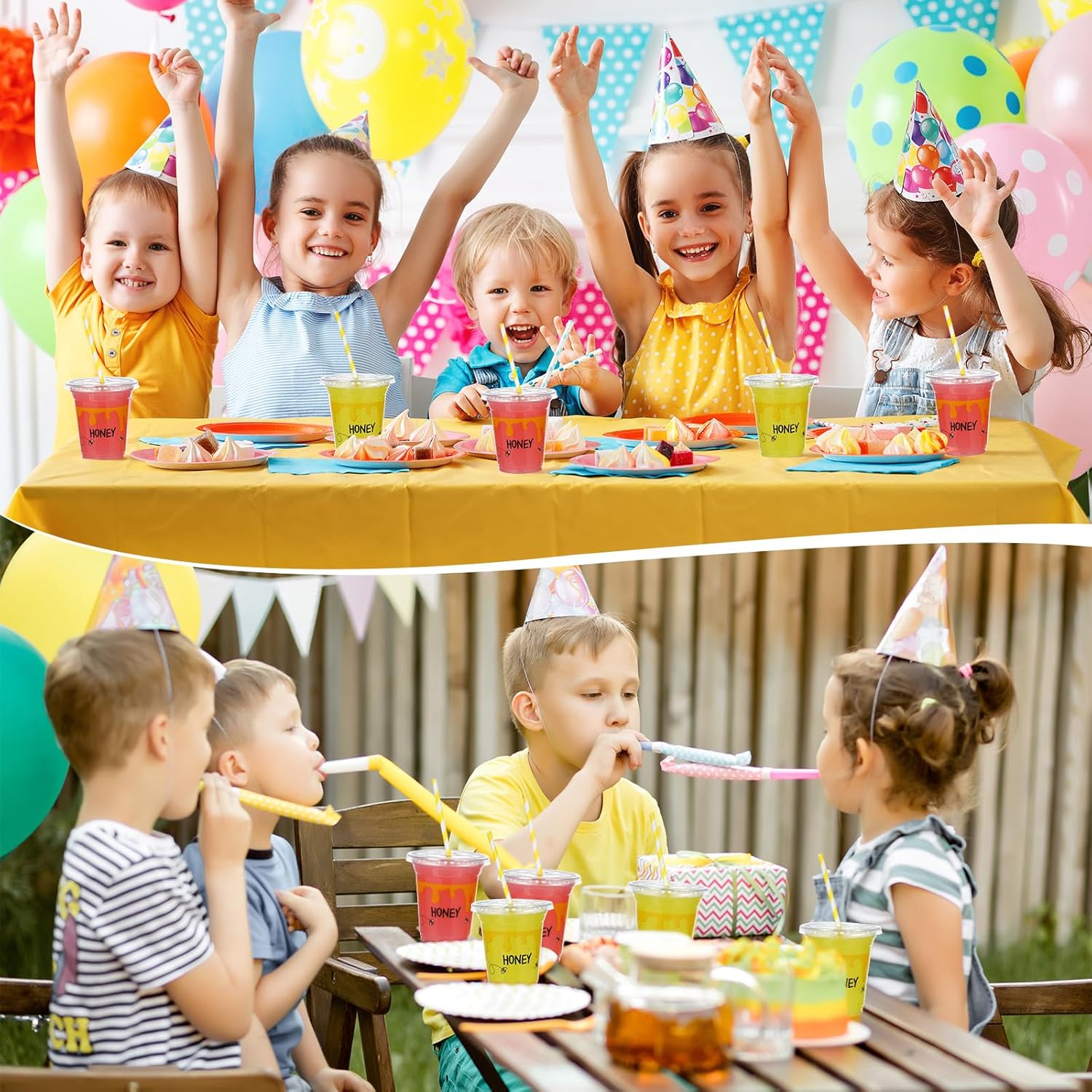 Features: Delicate and attractive patterns: The plastic disposable cups are designed with bee pattern, cute and bright, which make your party distinctive and relaxing, bringing your guests deep impression. Thoughtful design: Our summer coffee cup is equipped with straws and lids, which can prevent liquid from leakage and spill, it also keeps dust or flies, and bringing you nice drink using experience. Specifications: Material: plastic Color: as shown Size: Upper diameter: about 4 inch/ 10 cm Bottom diameter: about 2 inch/ 5 cm Height: 5 inch/ 12.6 cm Capacity: 12 oz Package includes: 100 x Plastic cups with lids 100 x Straws Notes: Manual measurement, please allow slight errors on size. The color may exist a slight difference due to different screen displays.