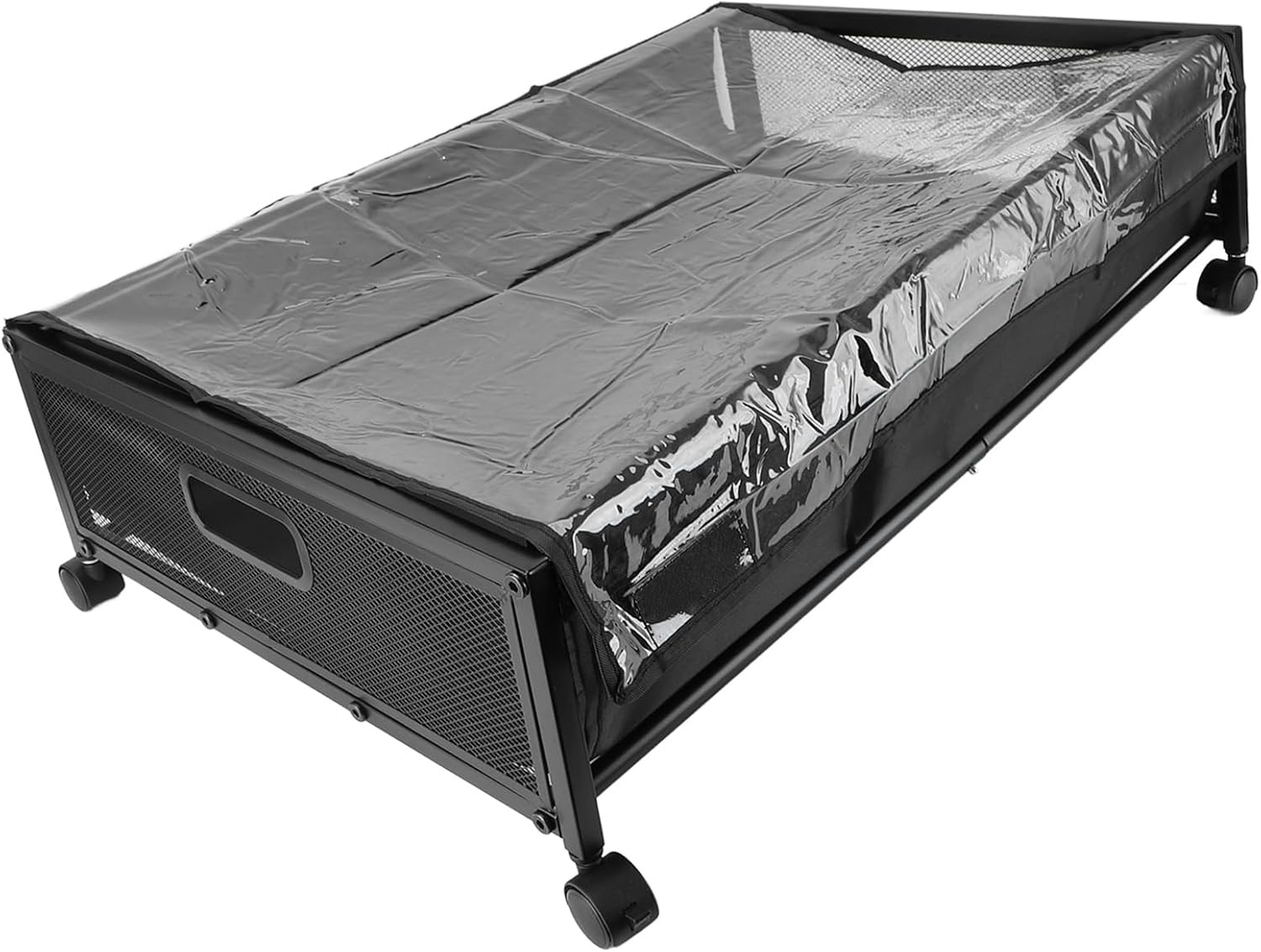 "Specification: Item Type: Under Bed Storage Container Material: Carbon Steel, Oxford Cloth, PVC PackageList: 2 x Side Mesh 12 x Support Tube 1 x Cloth Cover 12 x Screw 1 x Hex Wrench 4 x Wheel 1 x English Manual"